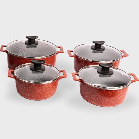 Caçarolas com alças de alumínio que garantem segurança e versatilidade, possibilitando o uso tanto no forno quanto no fogão — ideais para receitas que vão do fogão direto ao forno, com acabamento impecável.