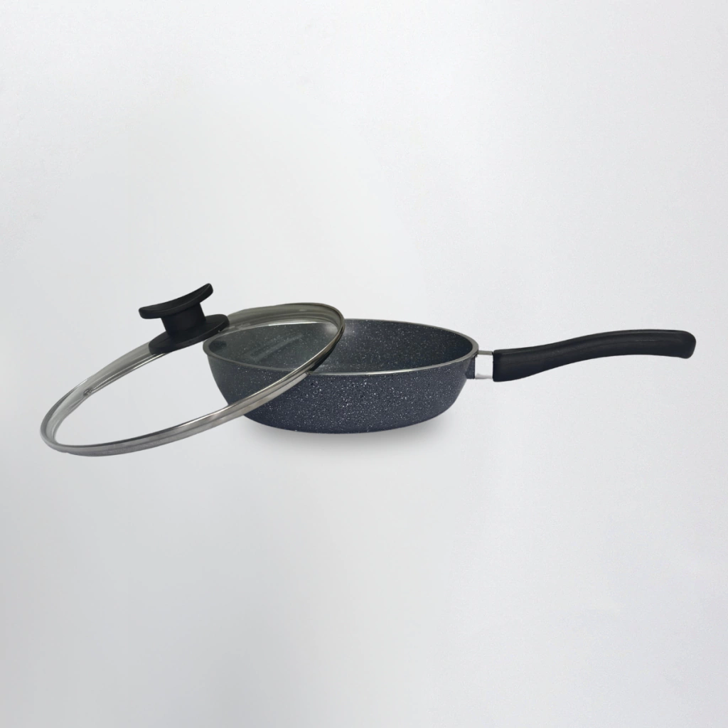 Frigideira com cabo de baquelite, que não aquece e proporciona um toque natural e sofisticado (uso exclusivo no fogão).